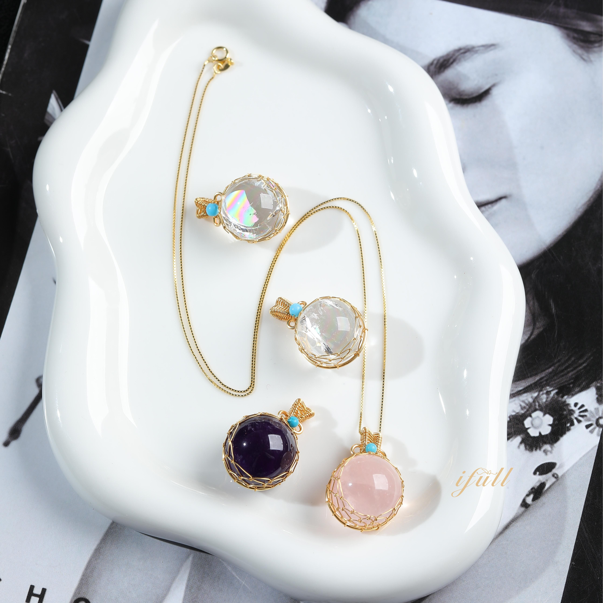 IFULL·晶语星辰·天然水晶手工网兜吊坠