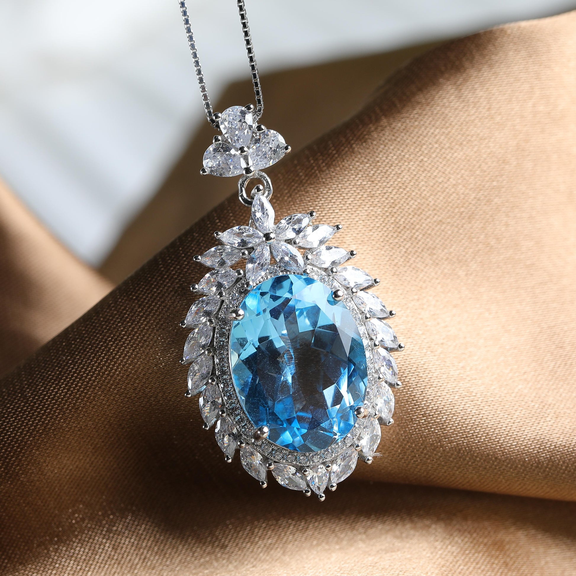 IFULL【琼琚】湛蓝星芒· 钻石围镶蓝色宝石吊坠